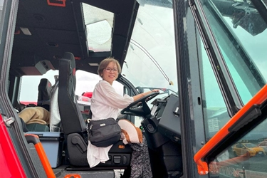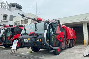 当日は指定された時間内に集合場所に到着し、セキュリティチェックを通過した後、空港職員の案内により、管制地域に入りました。このツアーは写真撮影ができますので、エプロンに入ってから、皆はシャッターを押す手が止まらないぐらいわくわくしていました。飛行機は目の前に止まり、後ろには荷物コンベアベルトの作業エリアがありました。シャトルバスに乗った後、空港の消防隊を訪ねました。目の前にある特殊消防車を間近で見ることができ、救急車や消防設備の体験もでき、本当に珍しい体験でした。