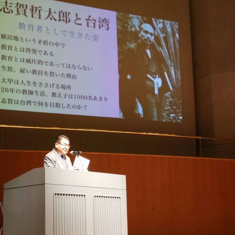 志賀哲太郎(1865~1924)の「生誕160周年記念シンポジウム」が1月17日、志賀の故郷・益城町でありました。志賀は日本統治時代の台湾に渡った教育者で、民族の違いを乗り越え台湾の子どもたちの教育を進めたことから、台湾人から「大甲(たいこう)の聖人」と言われています。パネルディスカッションの中で台中市大甲区の行政トップ・顔金源区長は、志賀の教育精神を「時代を越えて受け継いでいくべき宝物」と称えました。