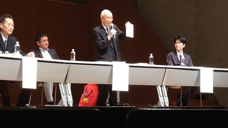 與談者除了顏區長之外,還包括益城町町長西村博則、志賀哲太郎妹妹的孫子 澤田寬旨先生,以及曾出演以志賀哲太郎生平與事蹟為主題電視劇的演員朝井大智。