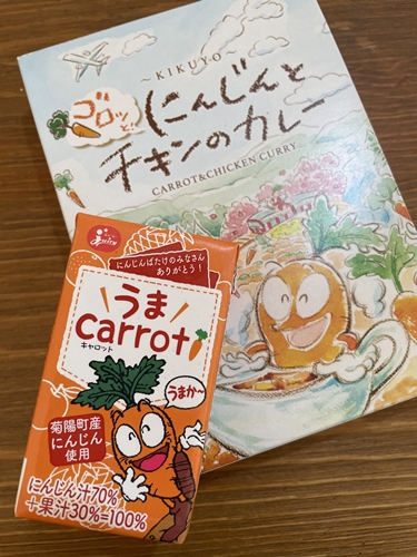 そんな土壌で育まれた人参は甘みがあり、生でも特有のクセがなく食べやすいのです(hanabi談)♪ 春と秋冬に栽培され、地元の農産物直売店『さん彩』にはほぼ一年中(真夏と収穫時期を除く)並びます。また、菊陽町の人参を使用したジュースやレトルトカレーもありますよ。