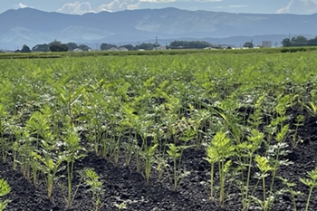 なぜ人参の生産が盛んなのか? 理由は土、阿蘇の麓に位置する菊陽町は火山灰の影響で、黒ボク土(くろぼくど)が多いのが特徴です。黒ボク土とは、阿蘇火山の火山灰が積み重なってできた黒くてホクホクした土壌のこと。保水性や通気性に優れていて、水はけが良い土は人参の栽培にぴったりとか。