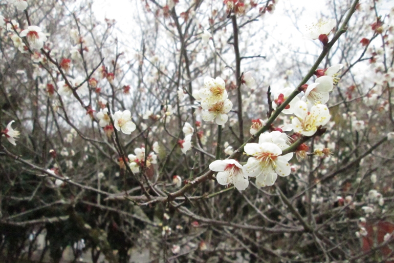 園内は約20種類、約380本の紅白の梅が咲き誇ります。
