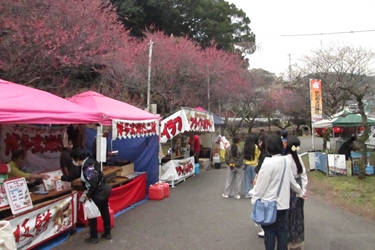この日は、年1回のイベント「梅まつり」開催日だったようで、和太鼓の演奏や数件の露店が出ており、にぎやかな雰囲気でした。