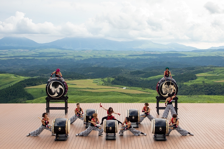 さらに、DRUM TAOの本拠地である阿蘇くじゅう国立公園内「野外劇場 TAOの丘」でも、毎週好評公演中です。
