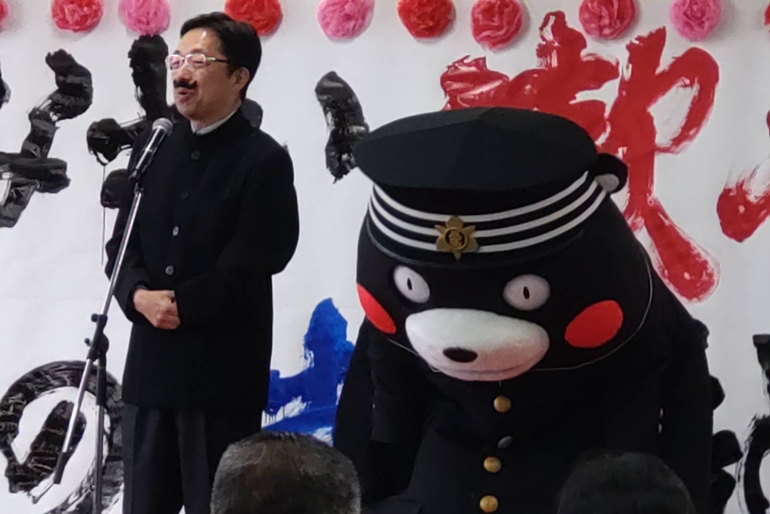 在開幕典禮中,必由館高中的學生表演了和太鼓與書法。熊本縣知事木村敬身穿立領學生制服致詞,表達祝賀之意。